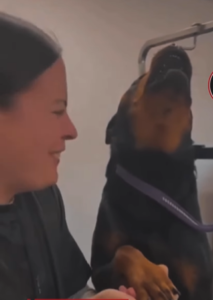 Um vídeo que circula nas redes mostra Theo, um rottweiler, reagindo de forma exagerada ao ter apenas uma unha tocada durante o atendimento em um