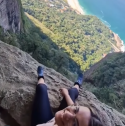 Uma turista foi flagrada sentada na chamada “cadeirinha” da Garganta do Céu, ponto turístico localizado na Pedra da Gávea, no Rio de