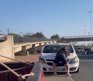 Uma cena impressionante foi registrada em uma rodovia de São Paulo. Após se envolver em um acidente, um motorista tentou fugir do