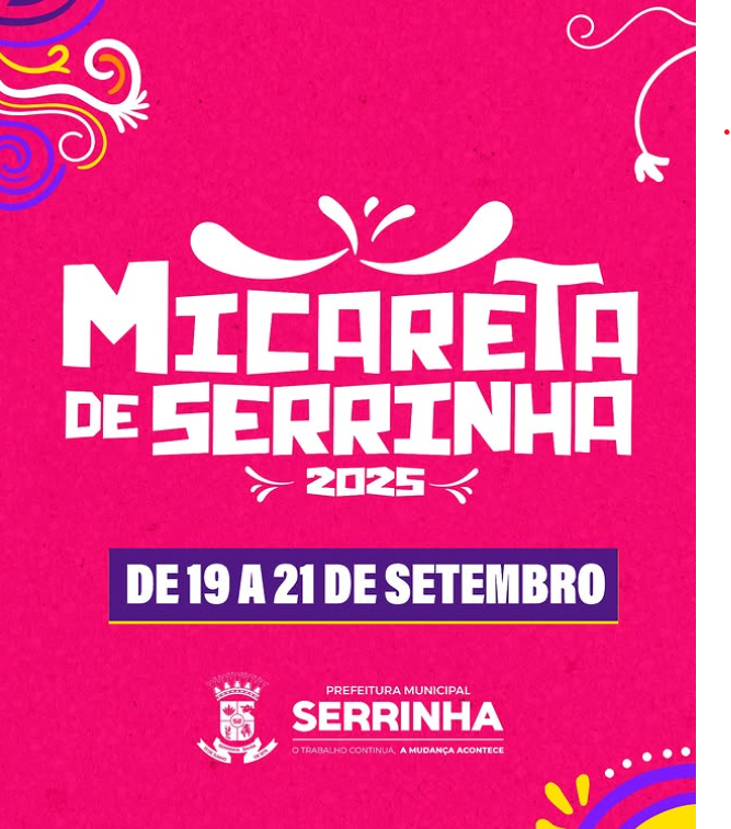 A Prefeitura Municipal de Serrinha divulgou a programação oficial da Micareta de Serrinha 2025, que acontece entre os dias 19 e 21