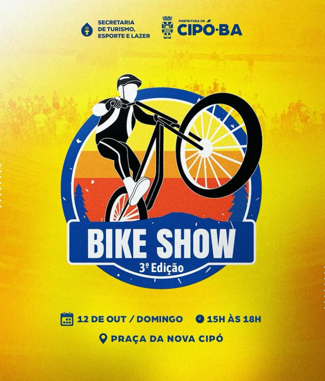A Secretaria de Turismo, Esporte e Lazer de Cipó anunciou a realização da 3ª edição do Bike Show, que acontece no próximo