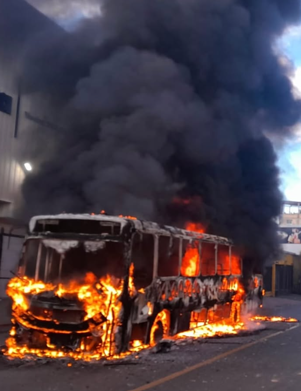 Um ônibus do Consórcio Integra ficou completamente destruído após pegar fogo na manhã desta quarta-feira (8), na Rua Direta do bairro do