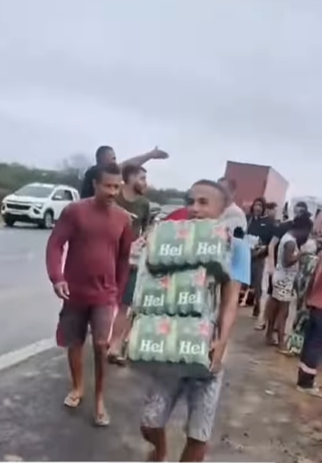 Uma carreta carregada de cerveja Heineken tombou na manhã desta quarta-feira (22) em um trecho da BR-116, no município de Serrinha, interior