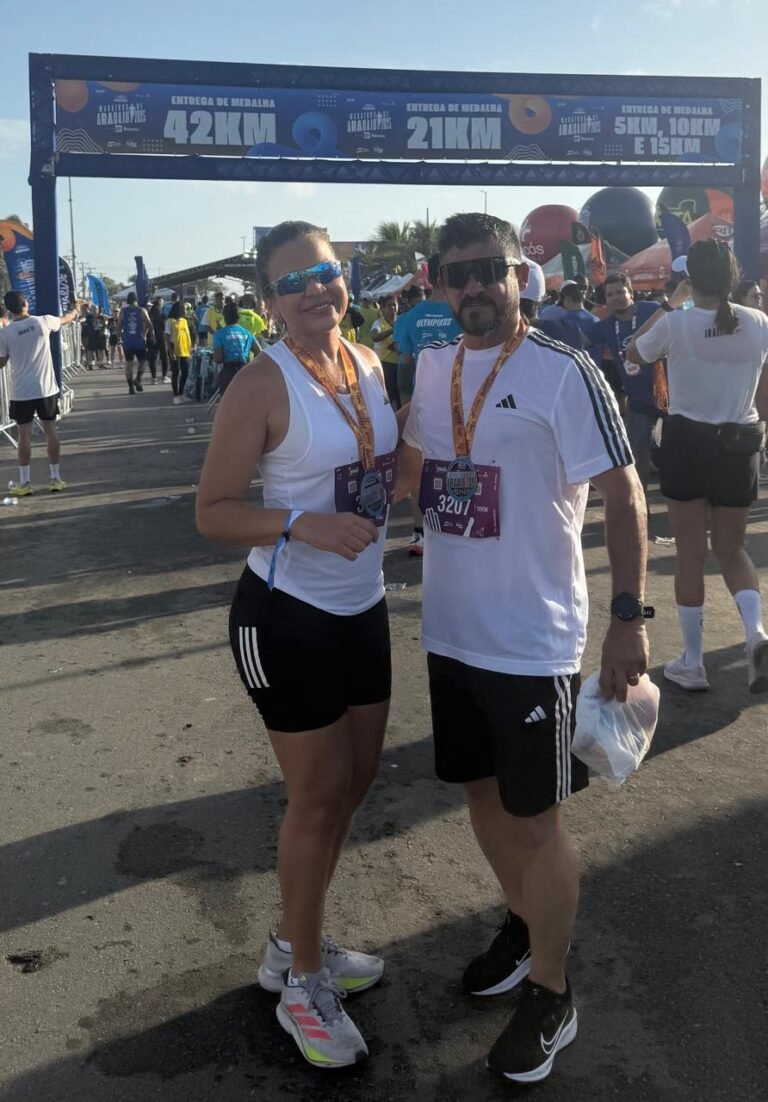 O casal de atletas Cássia e Alan Macedo viveu uma experiência que uniu aprendizado e superação durante sua participação na última maratona
