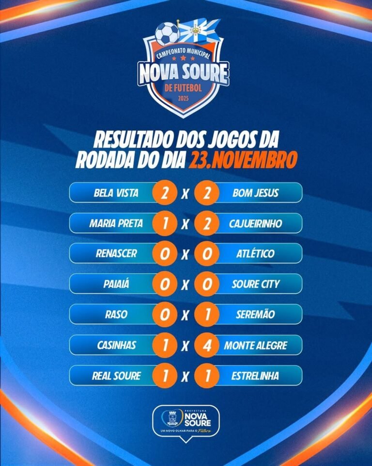 A bola voltou a rolar no Campeonato Municipal de Nova Soure neste domingo, 23 de novembro, com uma rodada marcada por partidas