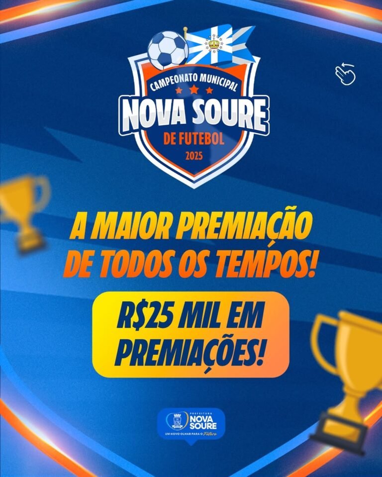 O Campeonato Municipal de Futebol de Nova Soure de 2025 registra a maior premiação de todos os temitos. Os valores totais distribuídos