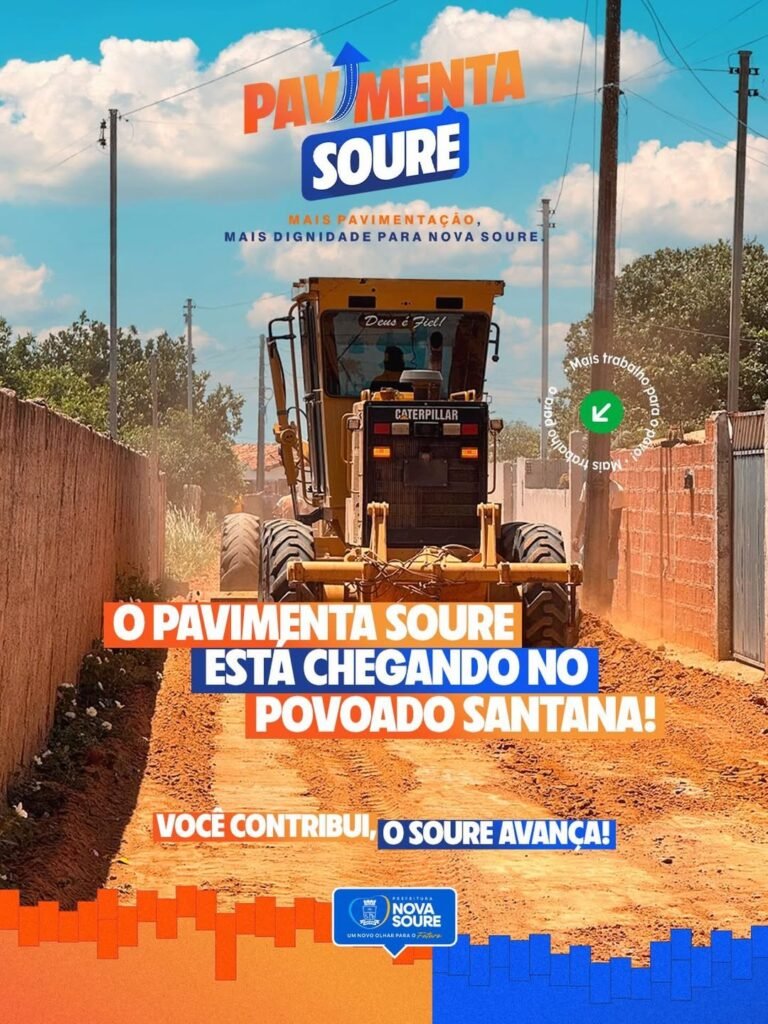 O programa Pavimenta Soure será iniciado no Povoado Santana, em Nova Soure, com obras de pavimentação realizadas com recursos próprios do município.
