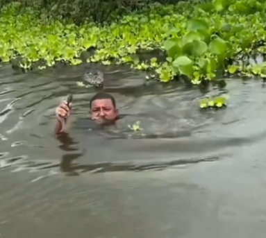Homem mergulha, sai com um peixe na mão… e quase vira almoço de jacaré Redação: Radar1 Imagens: Reprodução/os_liros