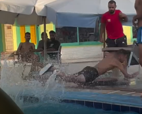 Homem desce de tobogã atravessa toda a piscina e só para fora dela. Redação: Radar1 Imagens: Reprodução/anthonyvslpersonal