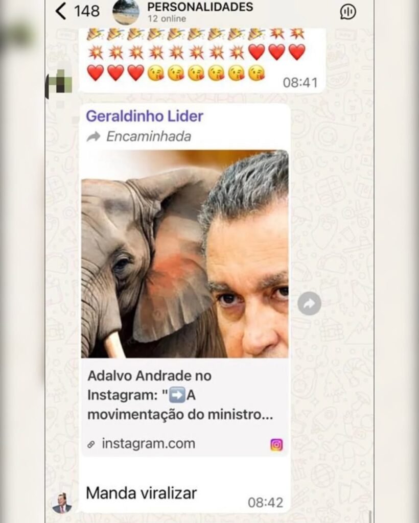 O recado enviado pelo vice do governador Jerônimo Rodrigues (PT-BA) foi direto: “Manda viralizar”. O grupo, intitulado “Personalidades”, reúne políticos baianos.