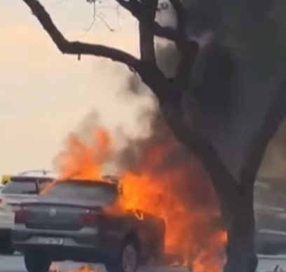 Uma cena inusitada chamou a atenção de quem passava pelo Eixo Monumental na manhã desta quarta-feira (16). Um carro foi completamente consumido pelas chamas em plena via, em horário de grande movimento.