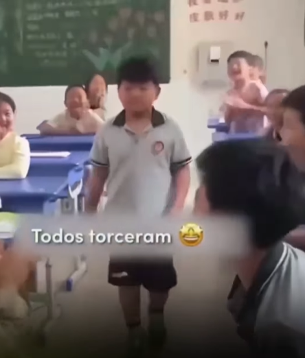 Ao chamar um estudante mais quieto para participar, a turma correu até ele e o envolveu em um abraço coletivo, transformando a dinâmica em um momento de acolhimento e pertencimento.