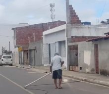 Em um vídeo que circula nas redes sociais, um homem aparece tentando afastar o fio com um tubo plástico, aparentemente com a intenção de liberar a via para a passagem de veículos e pedestres. A ação dividiu opiniões e gerou preocupação entre os internautas.