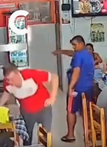Um vídeo registrado por câmeras de segurança em um restaurante de Paulista, Pernambuco, mostra o momento em que um garçom reage a uma agr3ssão de um cliente. Nas imagens, o homem empurra o funcionário de forma brusca, e o garçom, segurando uma bandeja, revida com um g0lpe rápido no agr3ss0r.