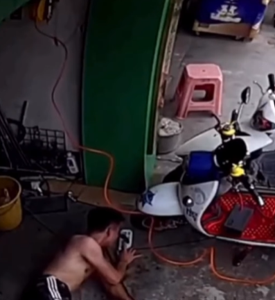 O vídeo que circula nas redes sociais mostra o momento em que ele segura o equipamento e em seguida retira o fio da tomada após a descarga elétrica.