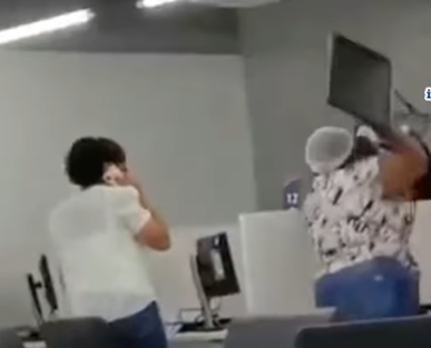 Segundo as imagens, a mulher protestava contra a falta de energia em sua residência. Nas gravações, é possível vê-la derrubando computadores e monitores enquanto funcionários e clientes observam a cena.