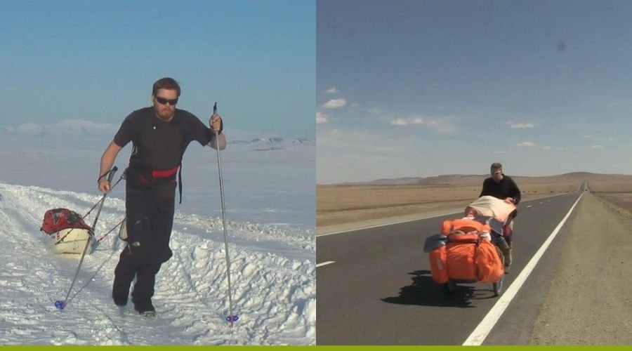 Outro momento extremo foi a travessia do Estreito de Bering, entre a Rússia e o Alasca. Ele percorreu o trajeto enfrentando gelo instável e temperaturas congelantes, tornando-se uma das raras pessoas a completar essa passagem a pé em tempos modernos.