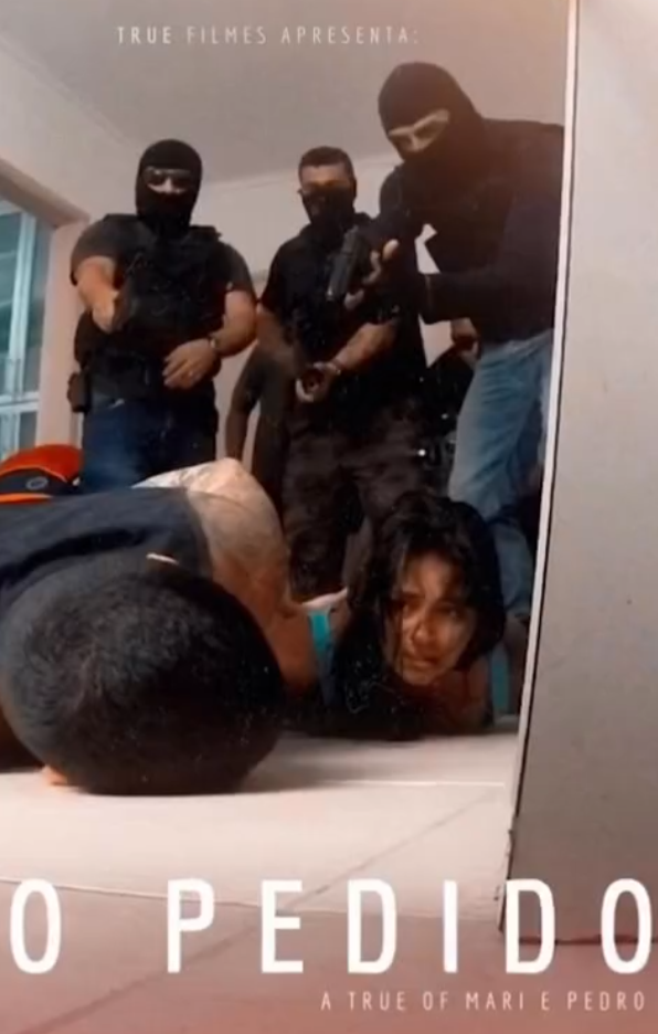 Momentos depois, a situação muda completamente: o suposto suspeito surge com uma aliança nas mãos, acompanhado dos amigos ao fundo, revelando que tudo não passava de uma brincadeira planejada para o pedido oficial. A gravação termina com a mensagem “em breve” e a imagem promocional do casal, como se fosse o cartaz de um filme.