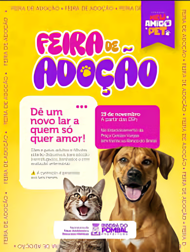 A Prefeitura de Ribeira do Pombal, por meio da Secretaria de Meio Ambiente e Recursos Hídricos, realiza na próxima quarta-feira (19) a Feira de Adoção Animal, dentro do programa Meu Amigo Pet. O evento acontecerá a partir das 9h, no estacionamento da Praça Getúlio Vargas, em frente ao Banco do Brasil.